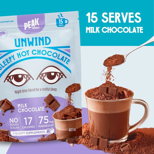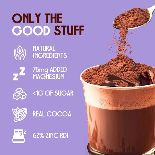 Fall asleep faster and wake up refreshed with this magnesium-rich hot chocolate. Just $1.95 per serve – delicious hot or cold.